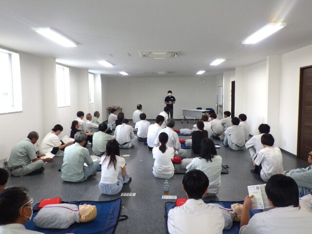 まずは日本赤十字社徳島支部より講師の方にお越しいただき、救急救命講習を行いました。